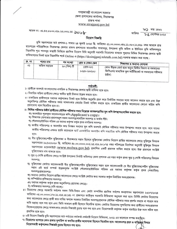 Sirajganj DC Office Job Circular 2025 is a golden opportunity for job seekers who are looking for a secure government job in Bangladesh. This circular ensures career growth, financial stability, and the chance to serve the nation.